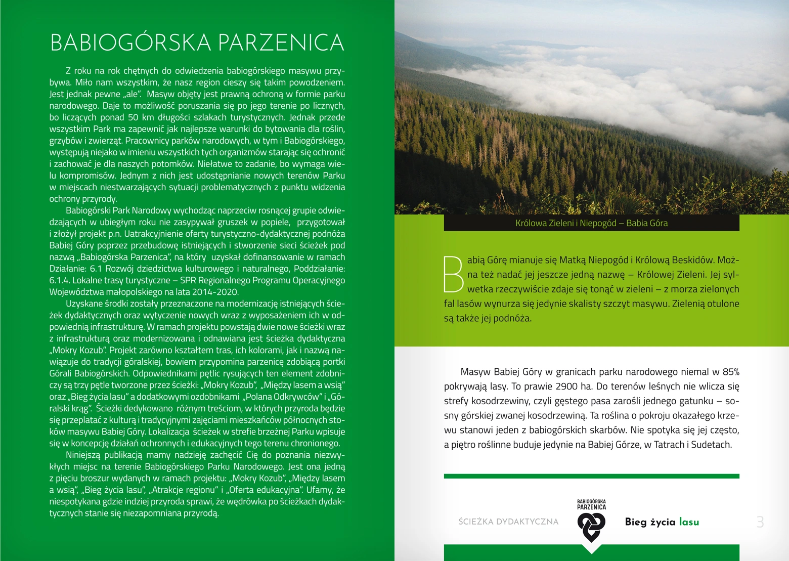 BGPN wydał pięć broszur w ramach projektu Babiogórska Parzenica: Atrakcje Regionu, Oferta Edukacyjna, Mokry Kozub, Bieg Życia Lasu oraz Między Lasem a Wsią